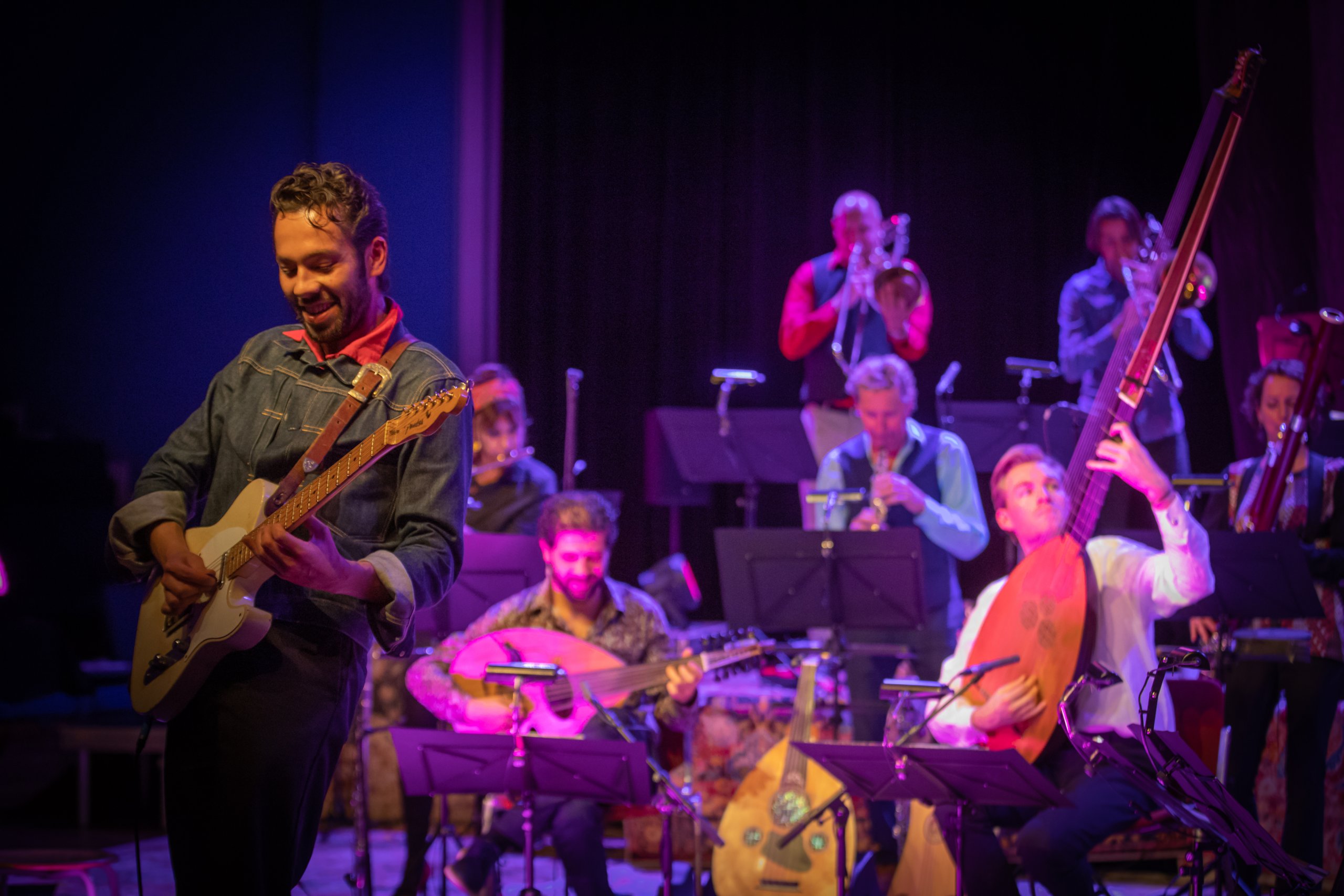 Het NBE is altijd op zoek naar bijzondere muzikanten dichtbij huis en van heinde en verre. Op de cd Troubadours zet het NBE de moeder van alle tokkelinstrumenten, die prachtige Arabische ud, in het zonnetje! Vier bruisende jonge Nederlandse tokkeltalenten: ud-speler Jaber Fayad, klassieke luitspeler David Mackor, flamencogitarist Jeff Heijne en bluesgitarist Dusty Ciggaar gaan een battle aan en slaan de handen ineen, uitgedaagd en ondersteund door het NBE. Melancholieke Arabische melodieën, verstilde lamento’s van de 17e –eeuwse componist John Dowland, opzwepende Spaanse ritmes en ruige blues in fascinerende arrangementen van Julian Schneemann.
